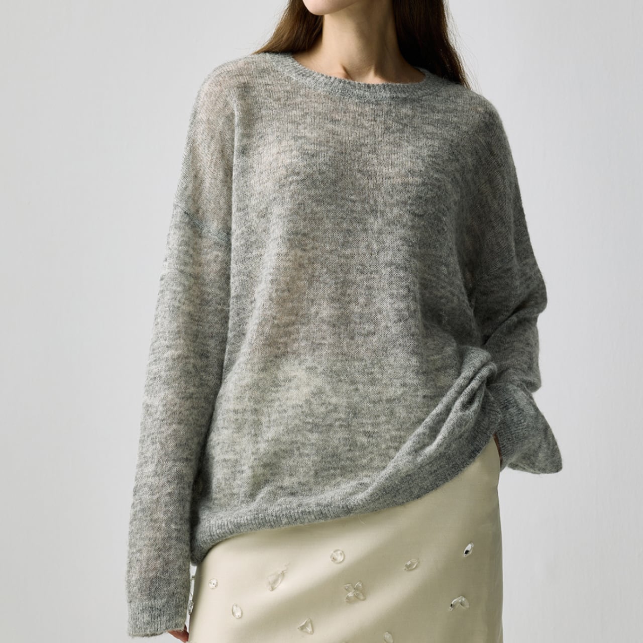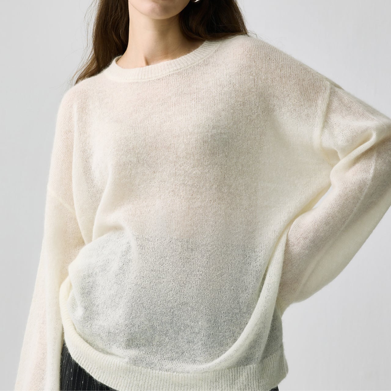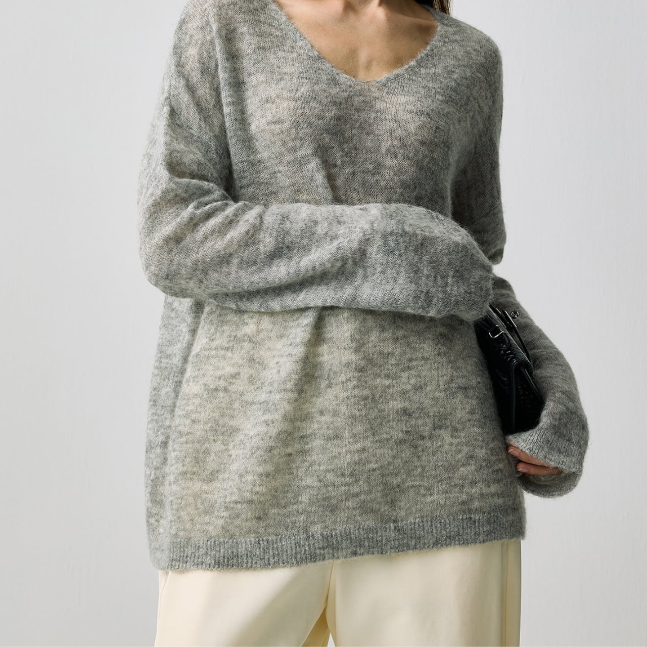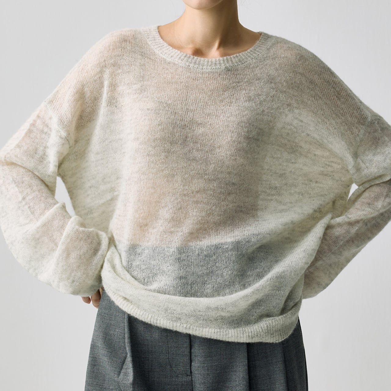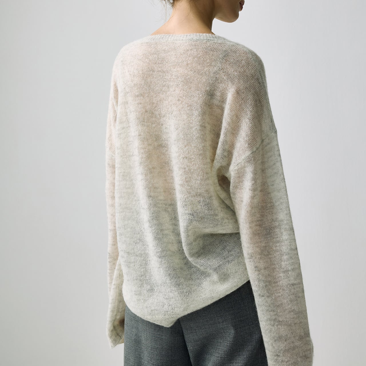 シアーゆるニットプルオーバー Vネック&クルーネック ルーズシルエット T001