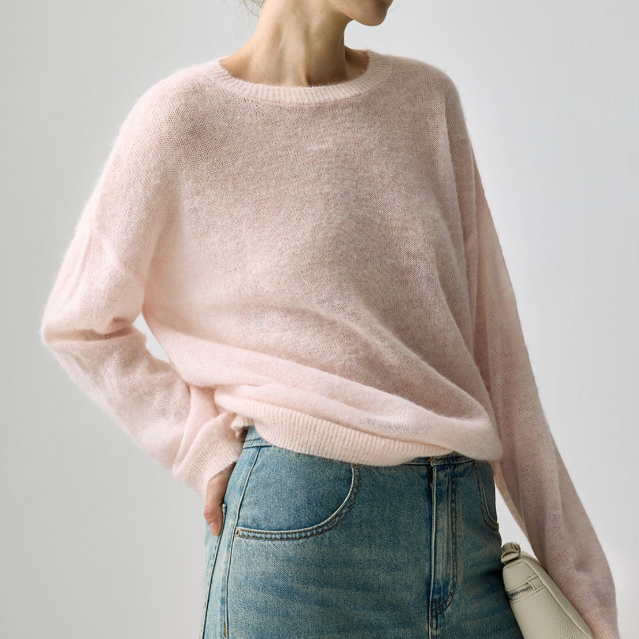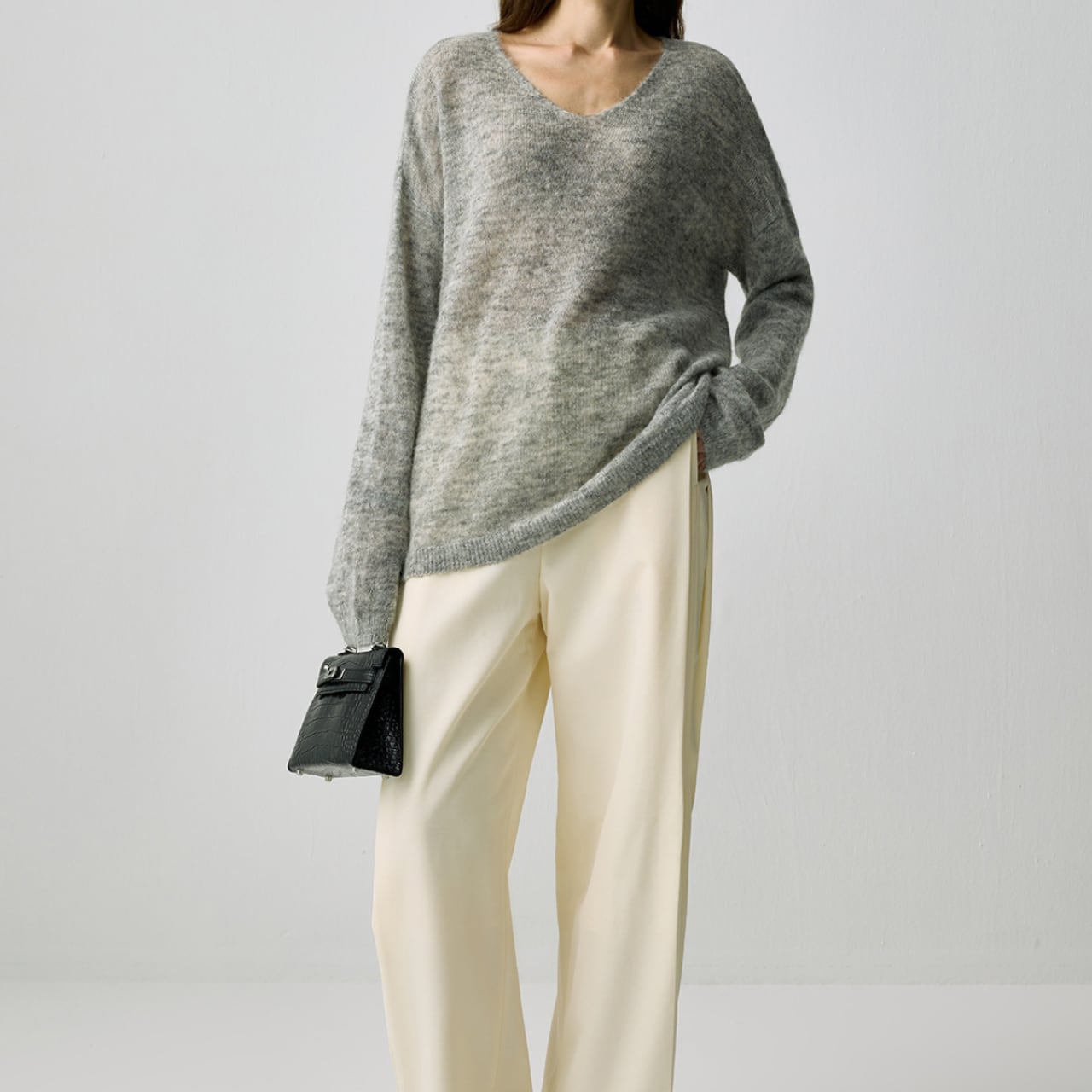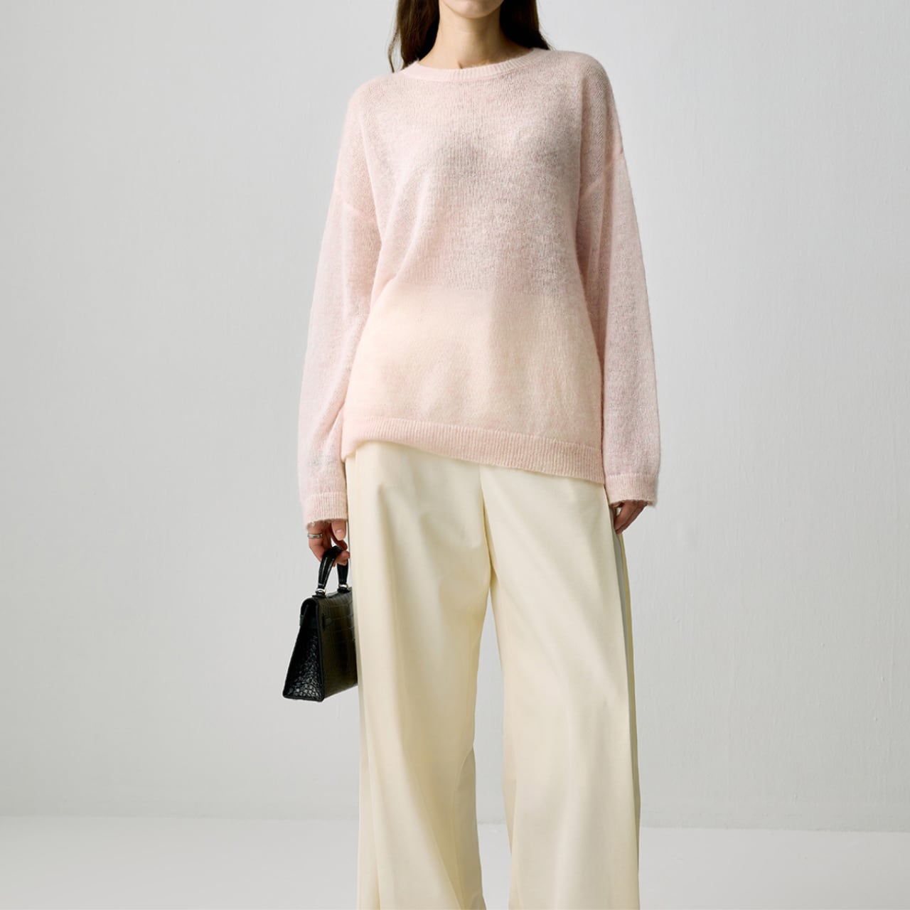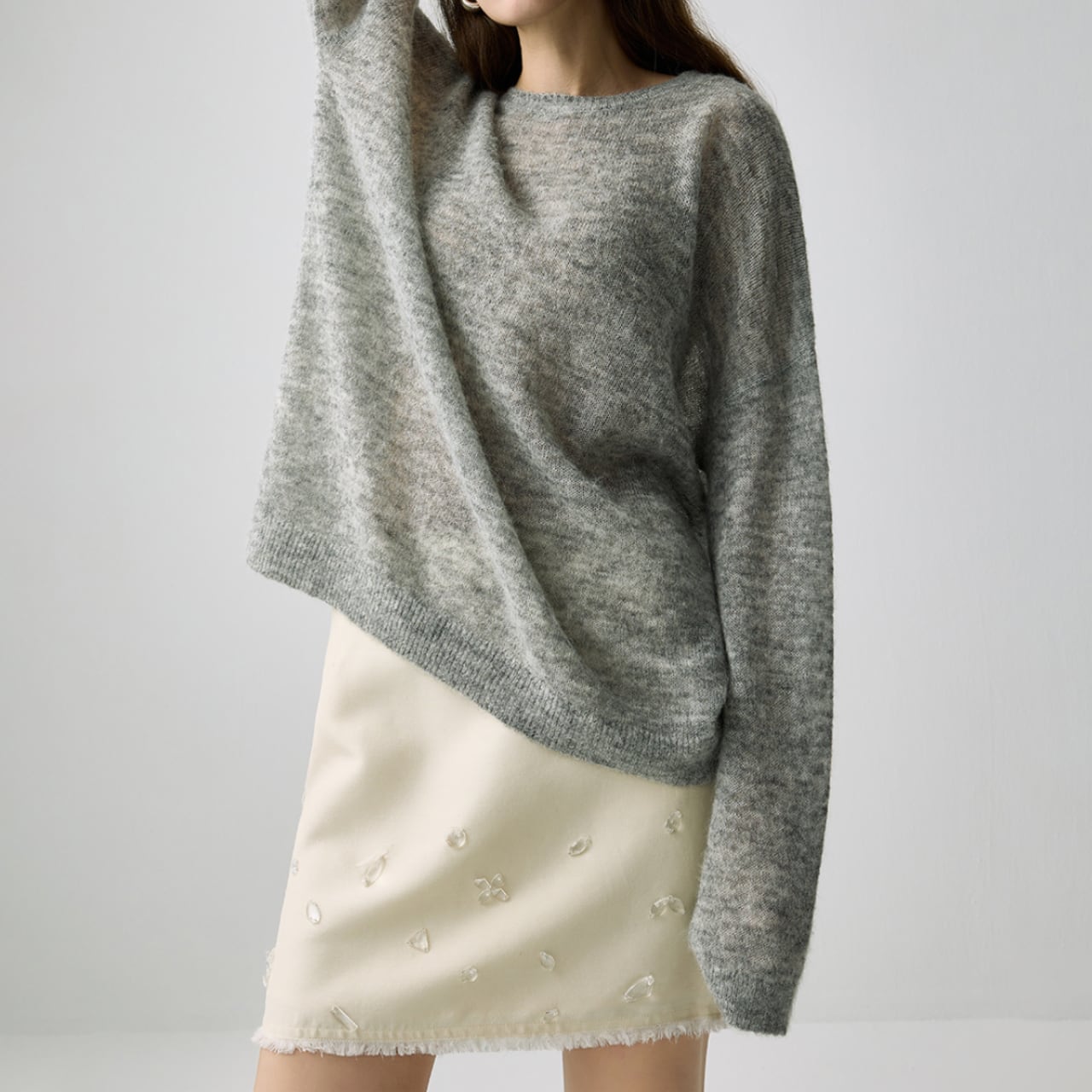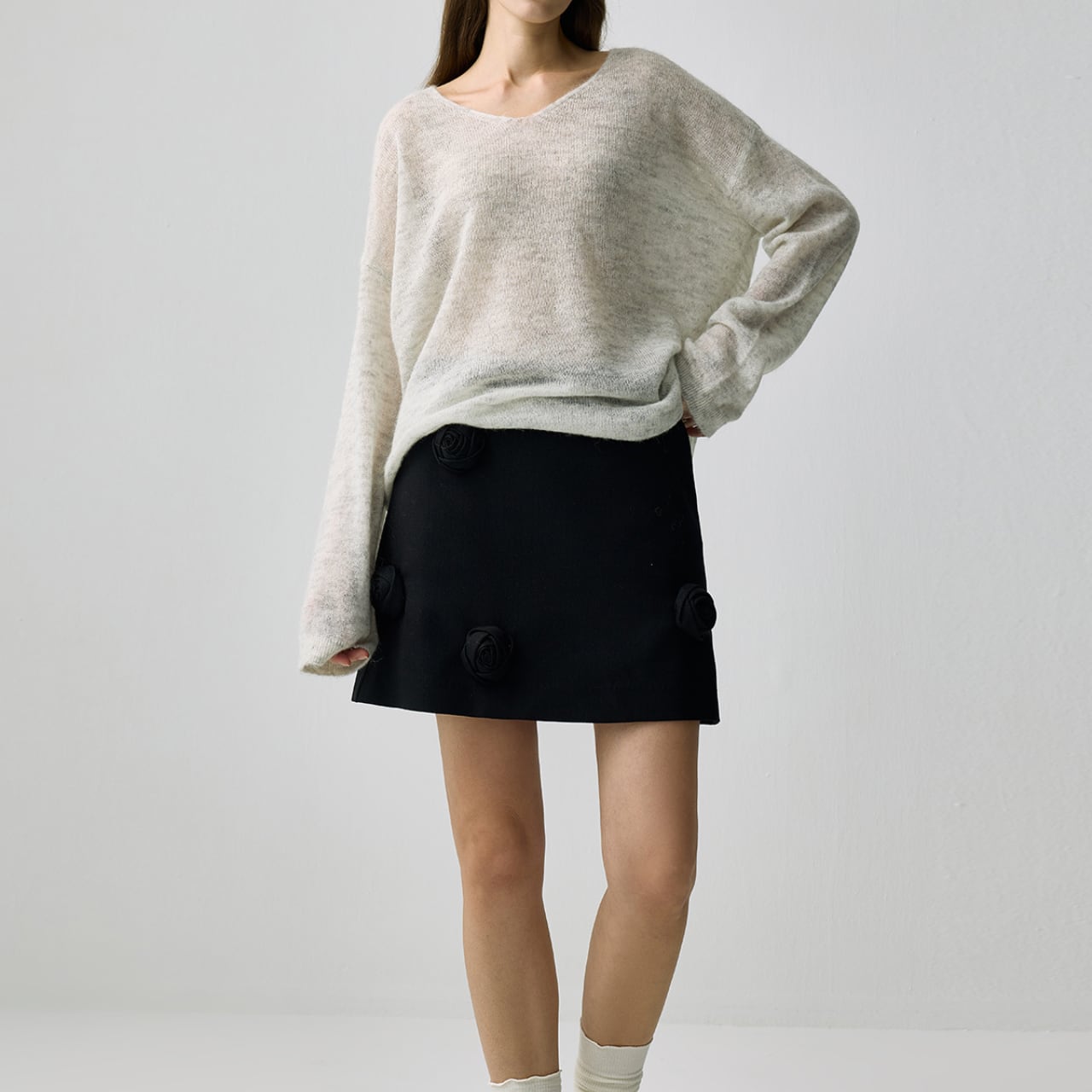 シアーゆるニットプルオーバー Vネック&クルーネック ルーズシルエット T001