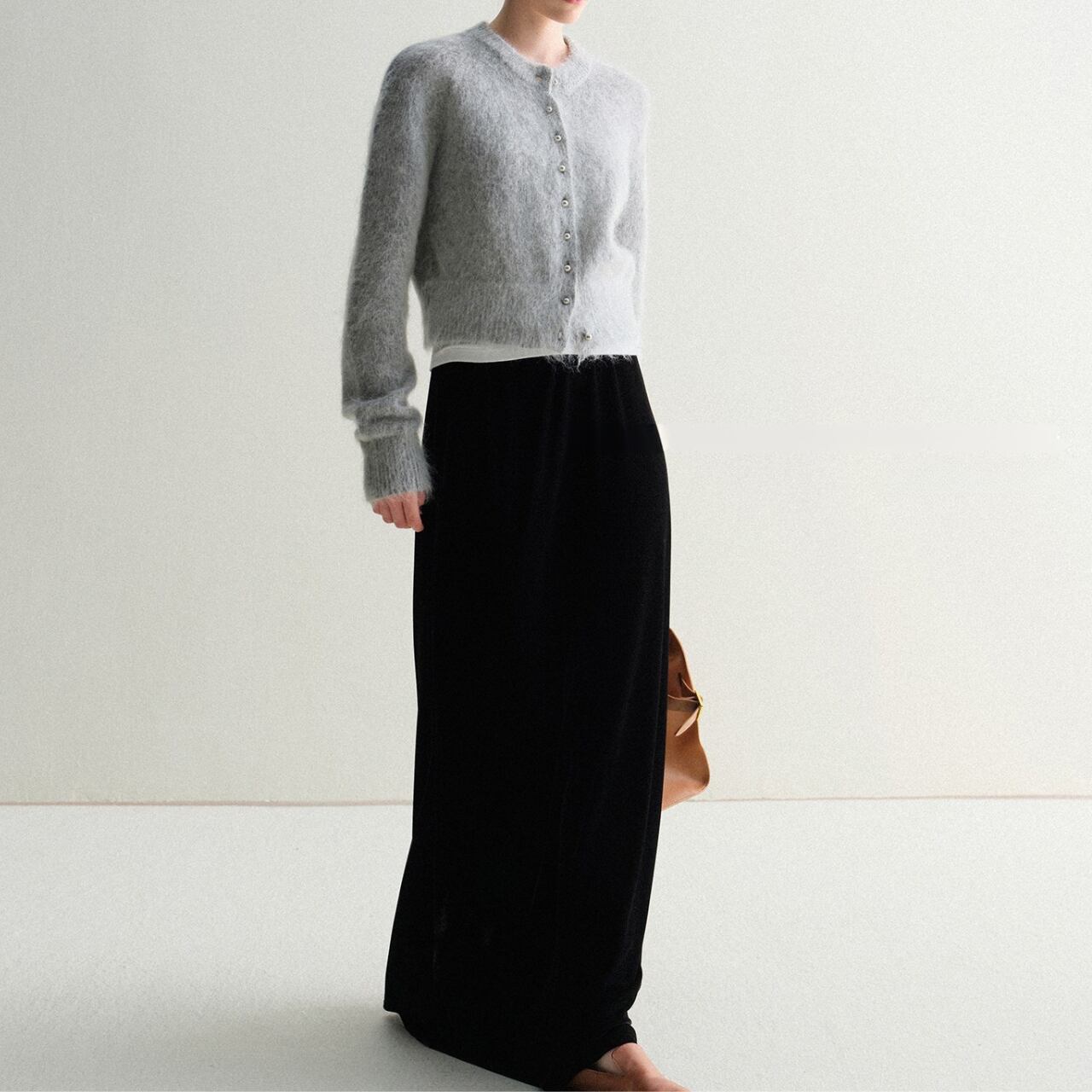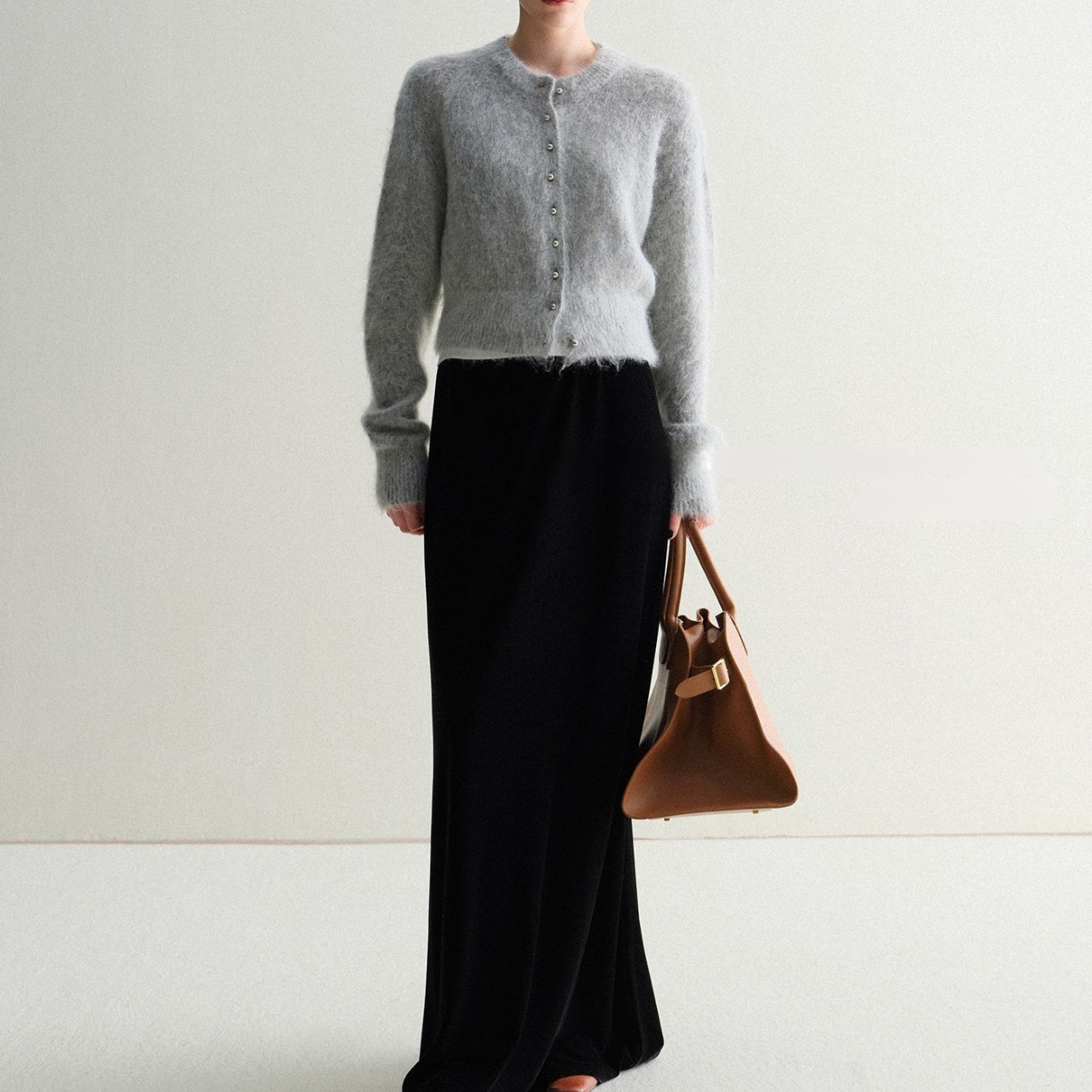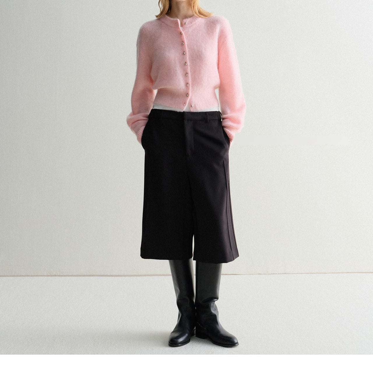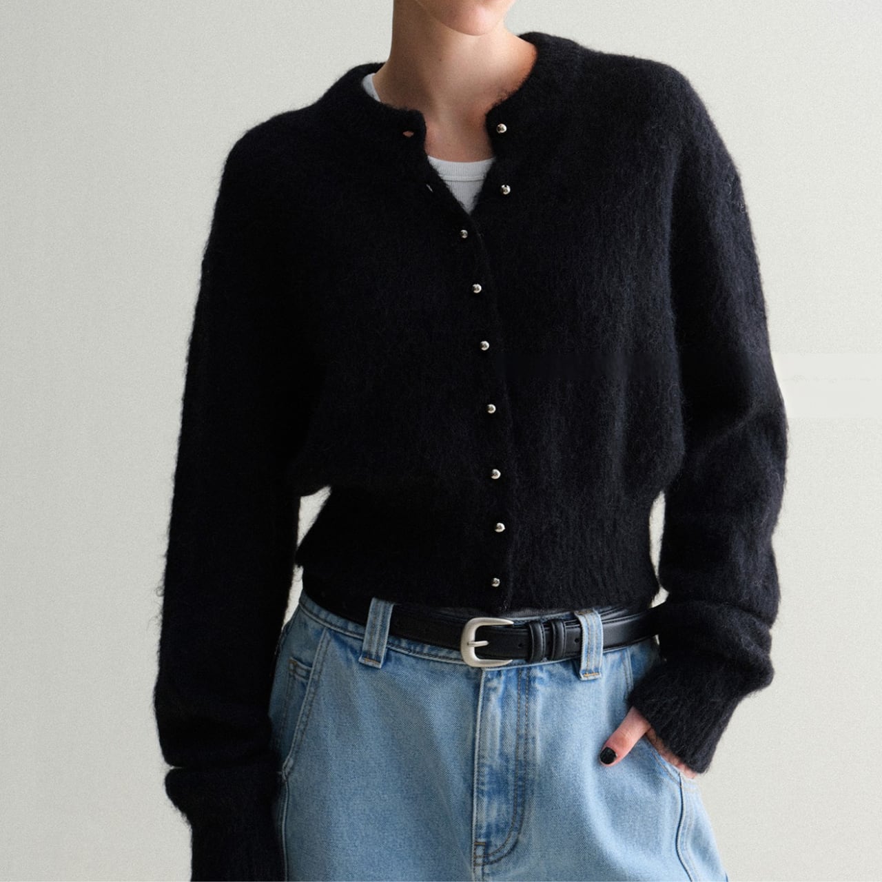 モヘアタッチショートカーディガン 上品クルーネックデザイン T003