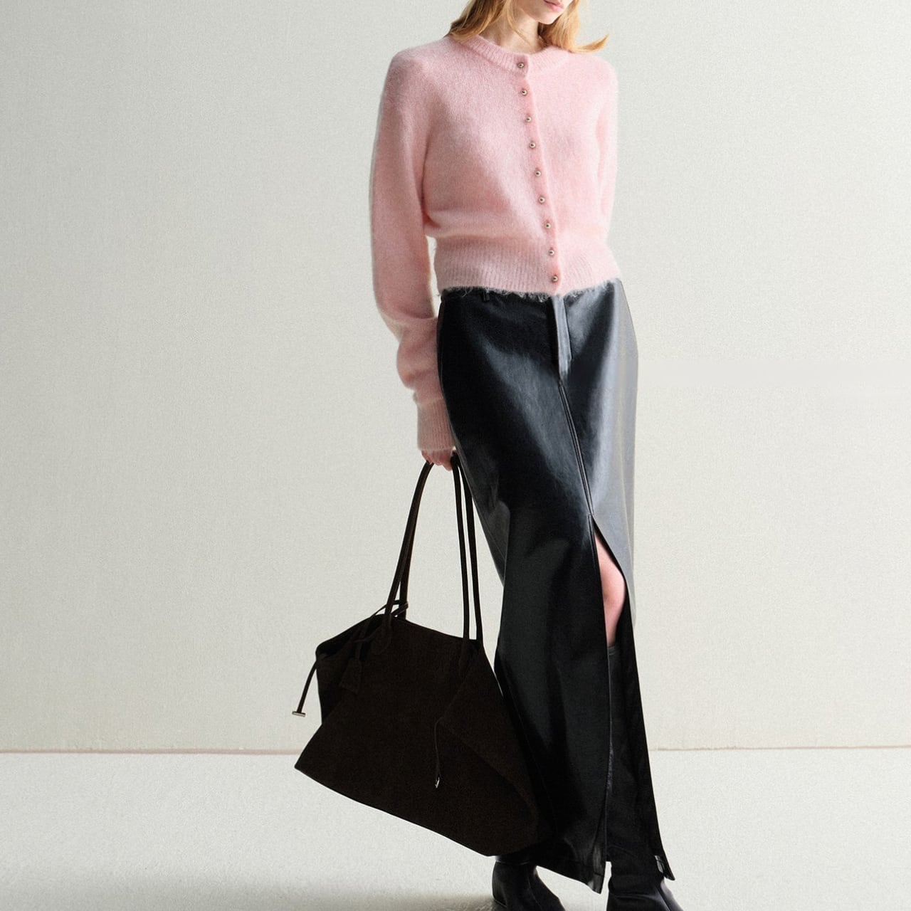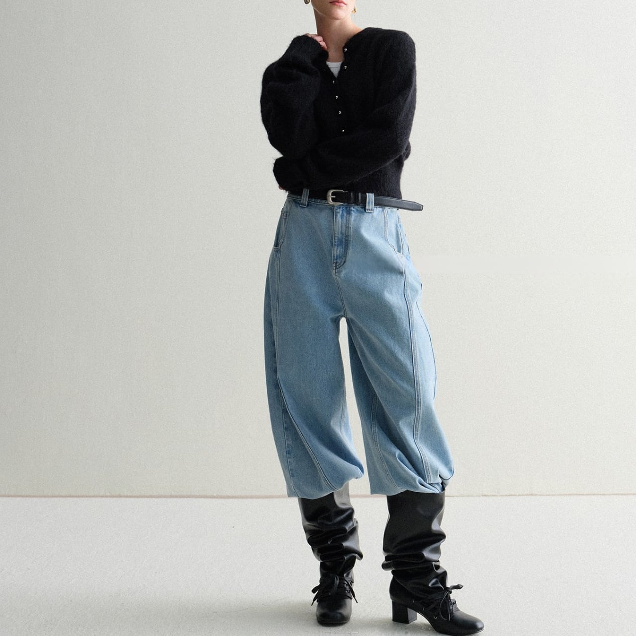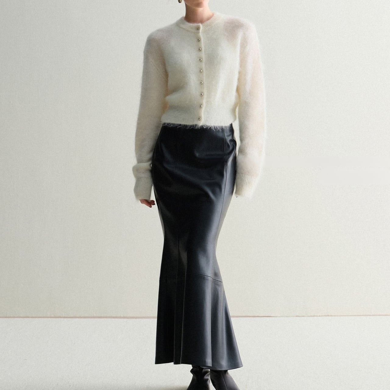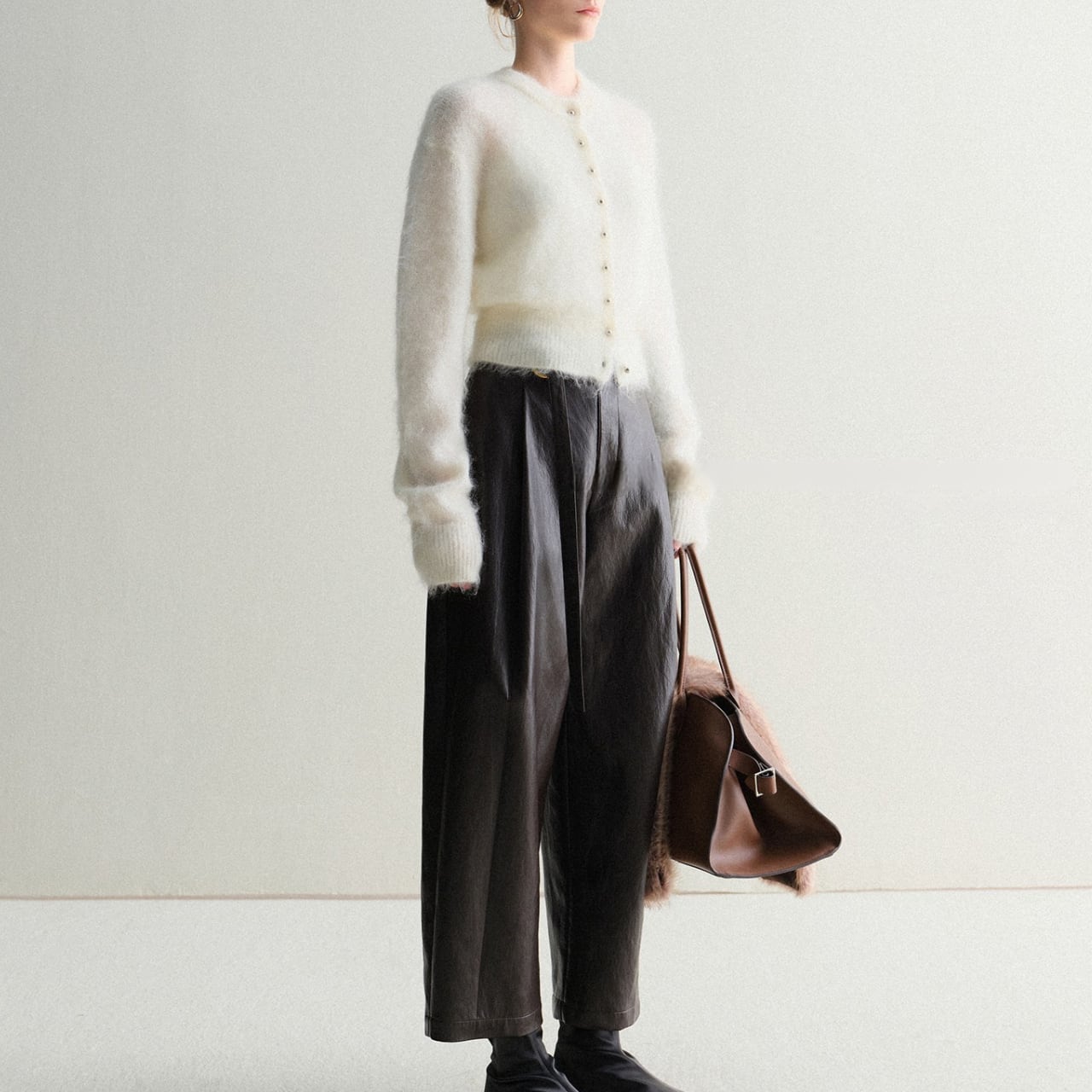 モヘアタッチショートカーディガン 上品クルーネックデザイン T003