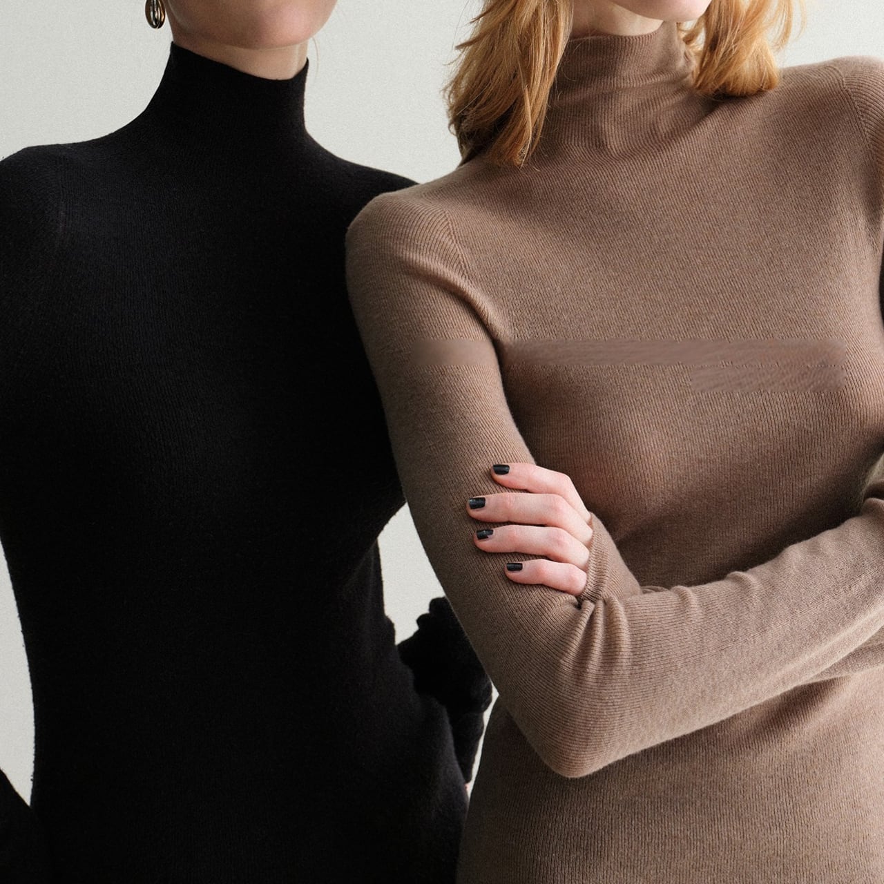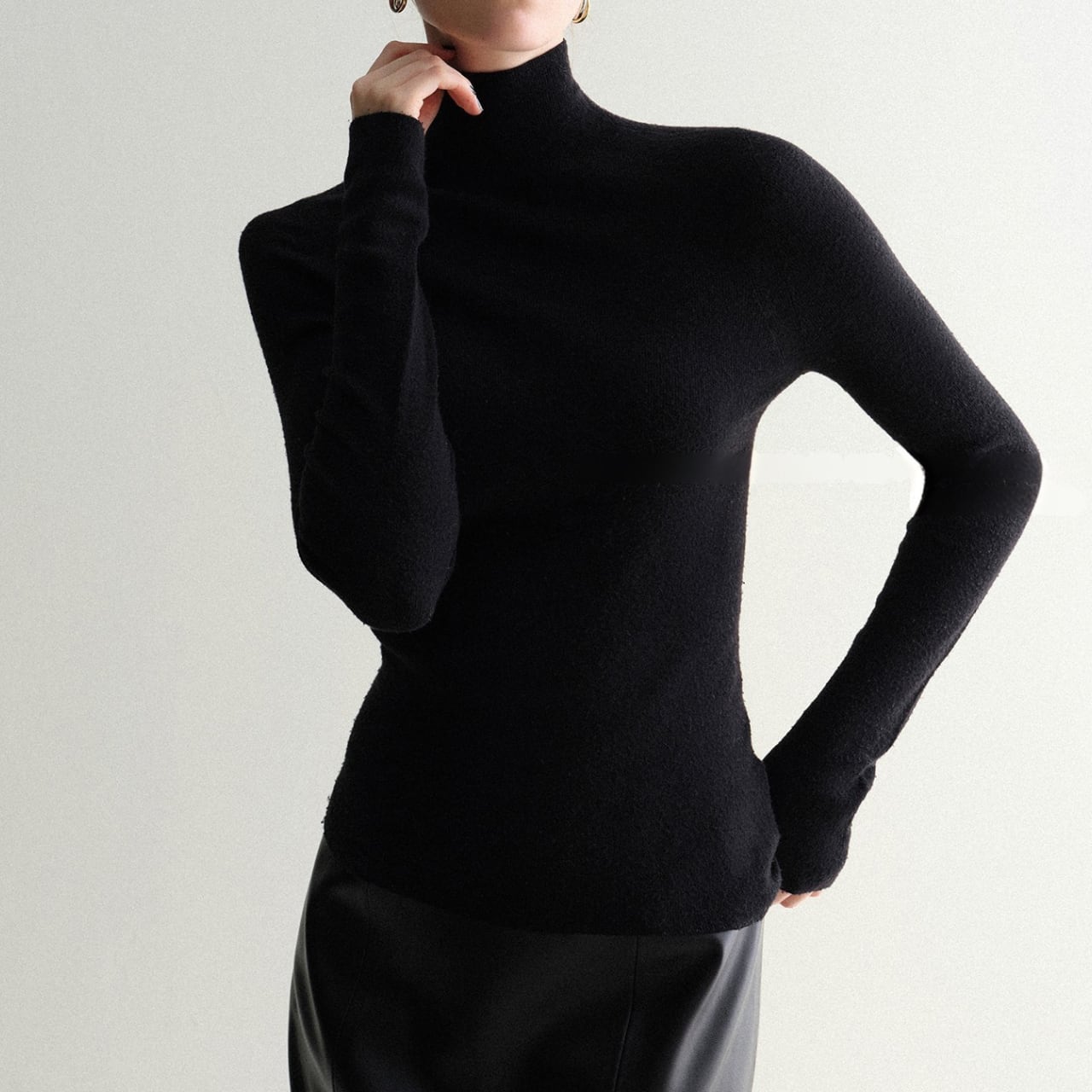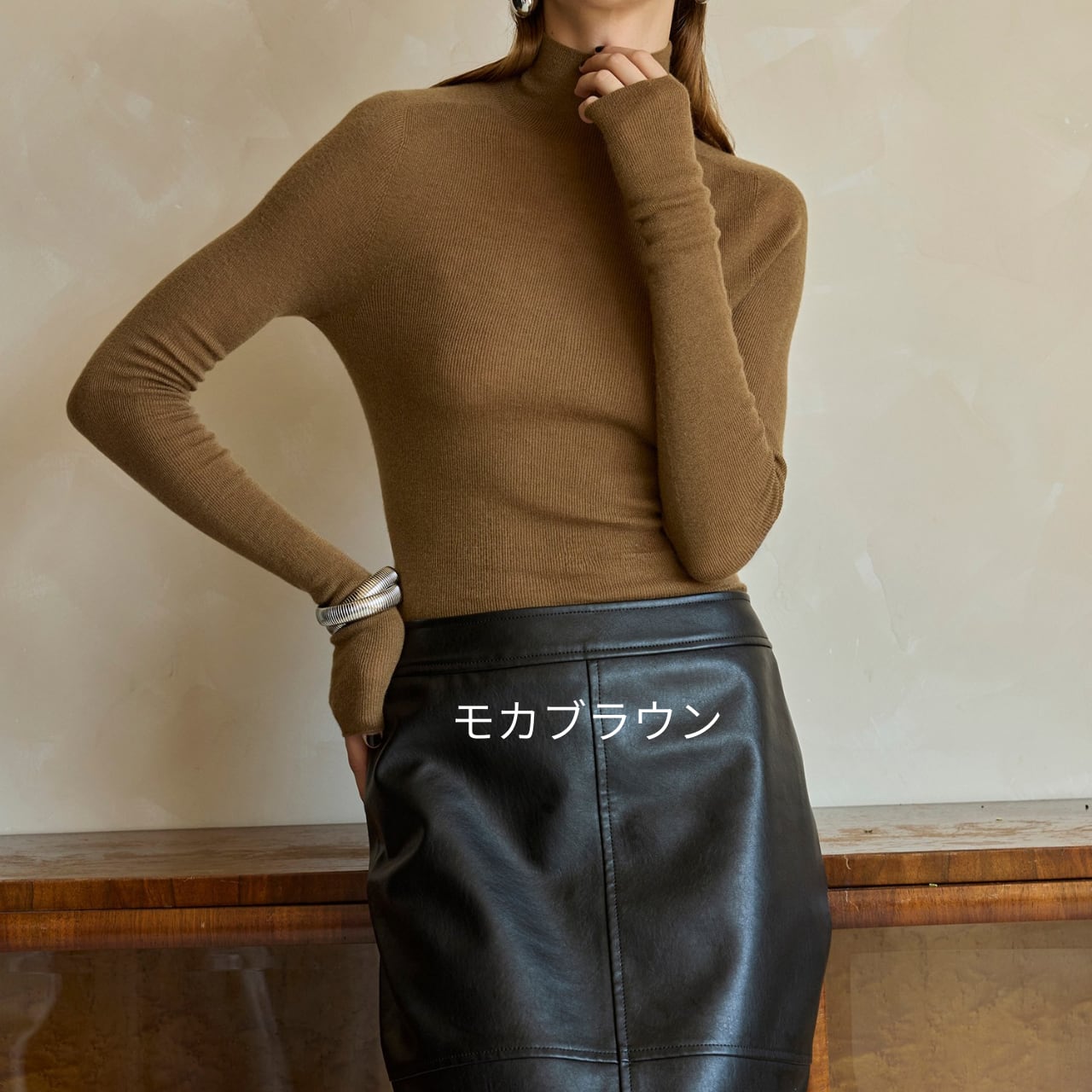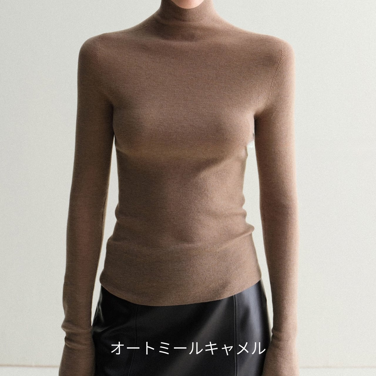 タートルネックが首元を優しく包み込み、暖かさを保ちます。