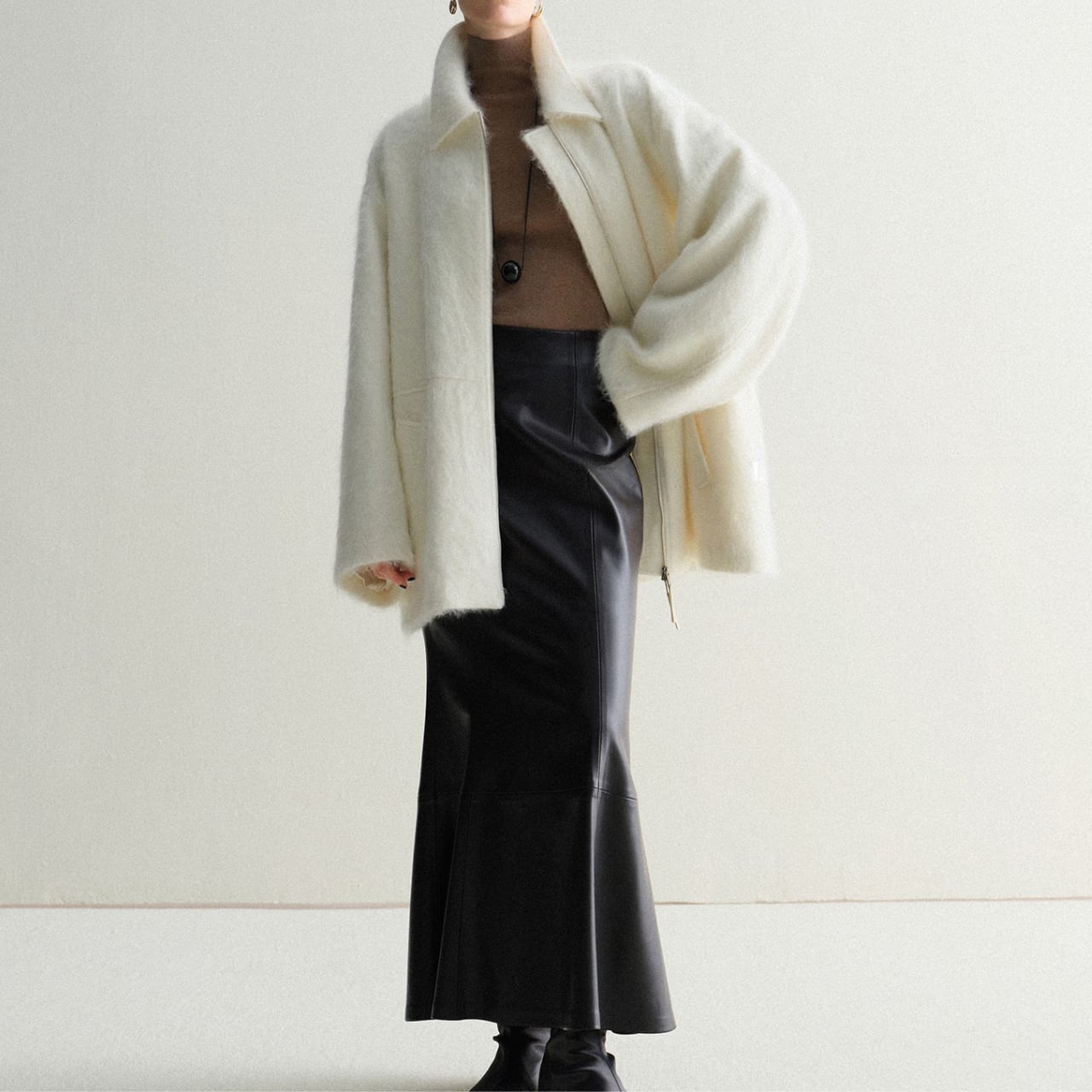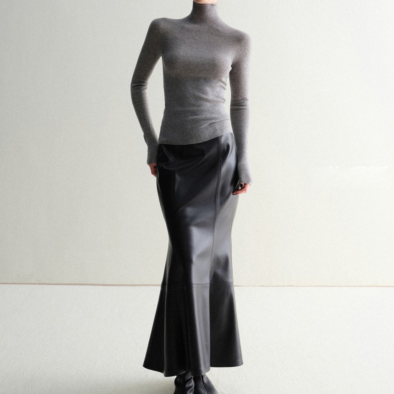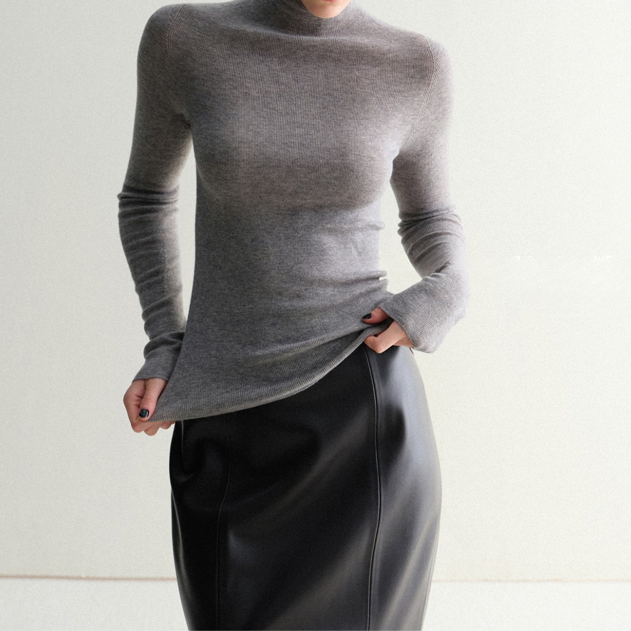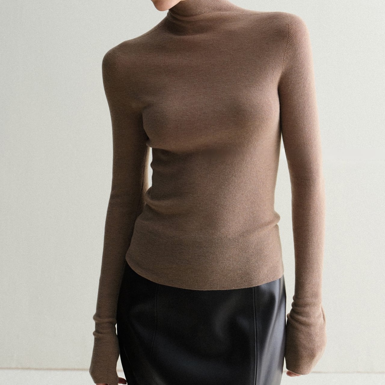 タートルネックが首元を優しく包み込み、暖かさを保ちます。