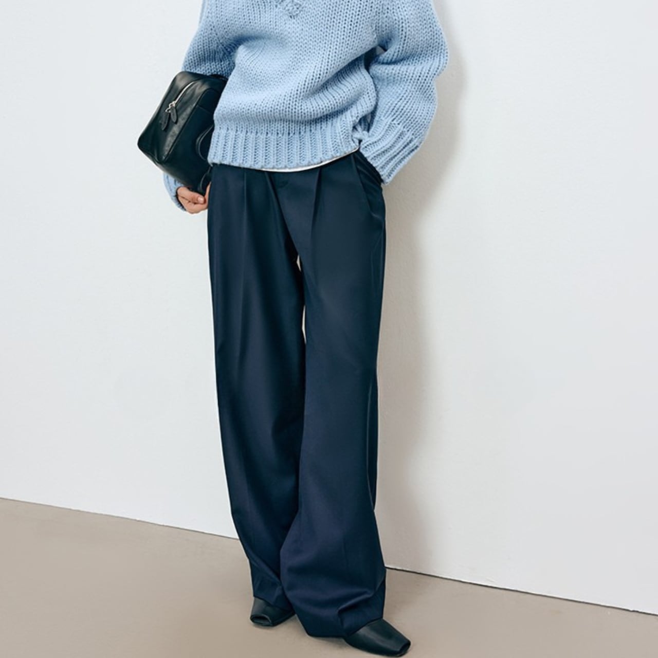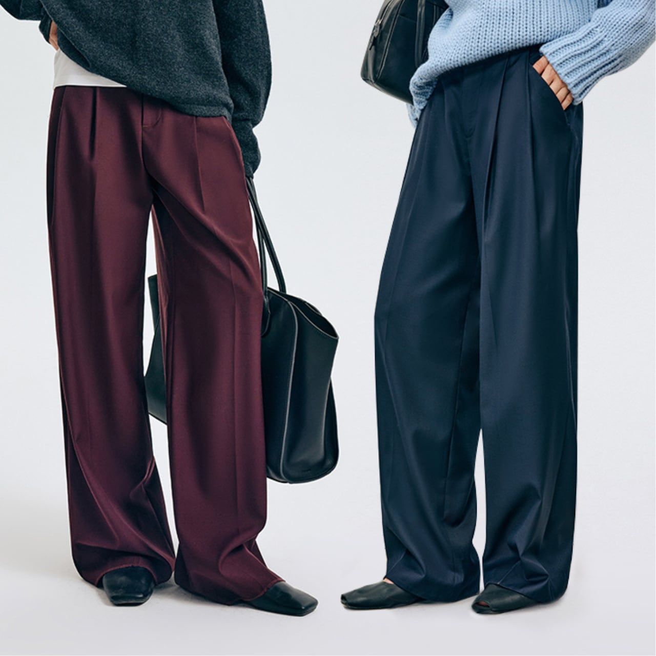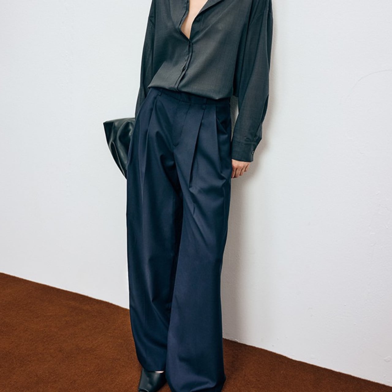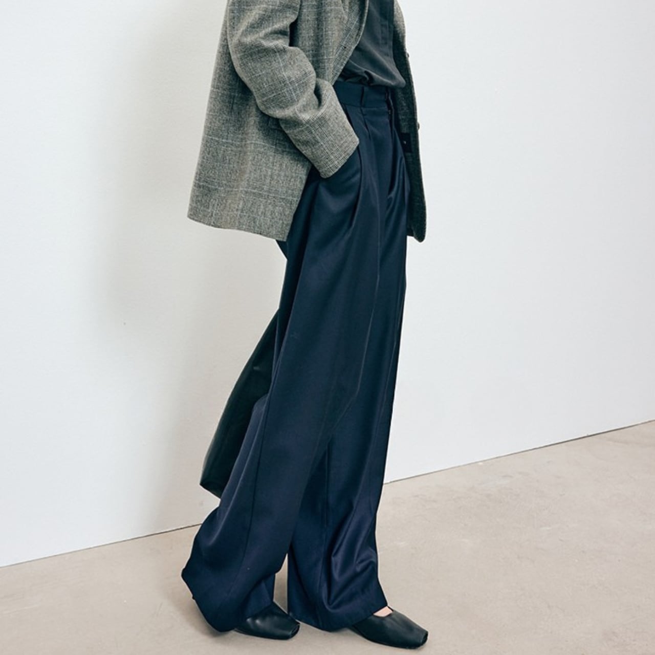 プリーツ入り ワイドレッグ フルレングス パンツ P002