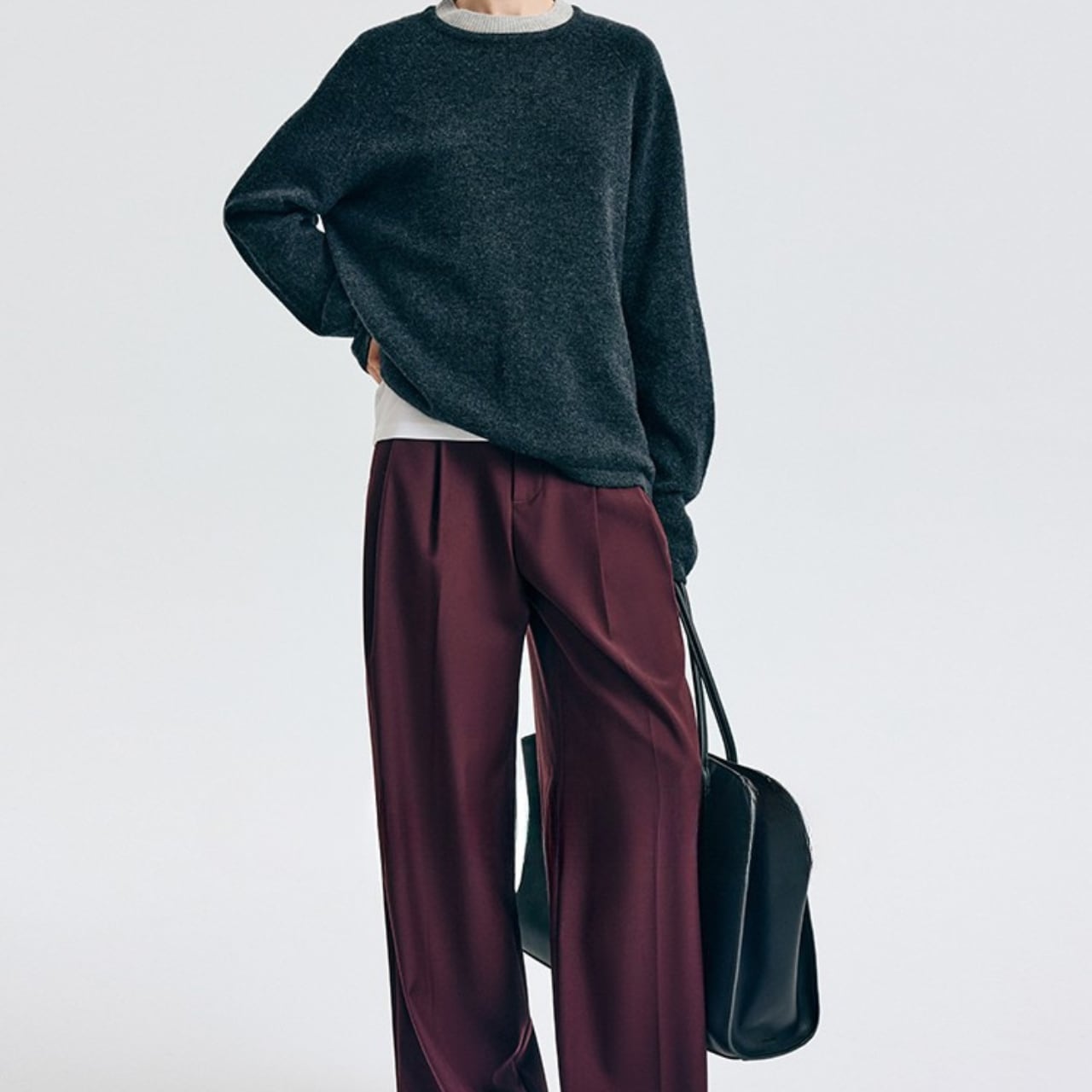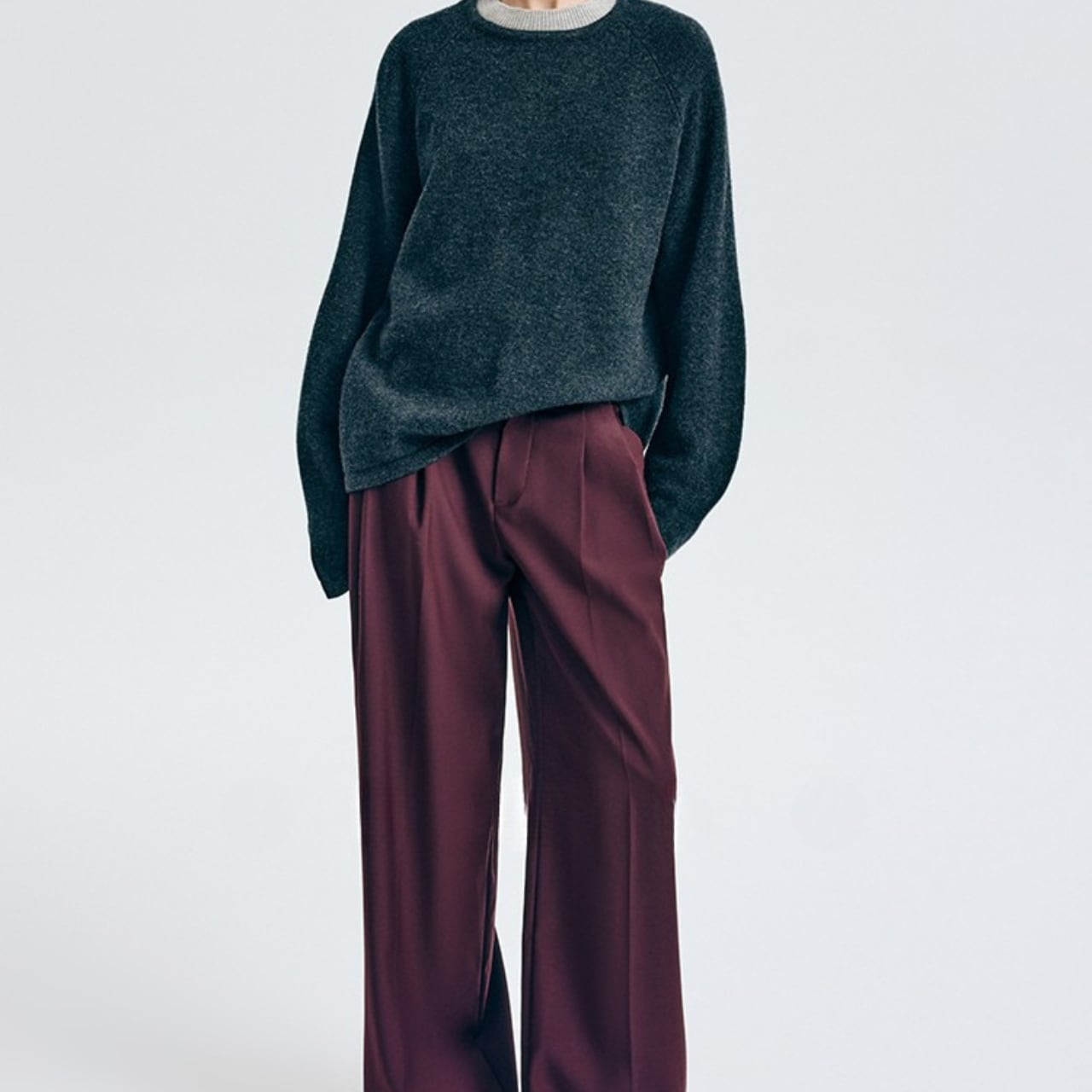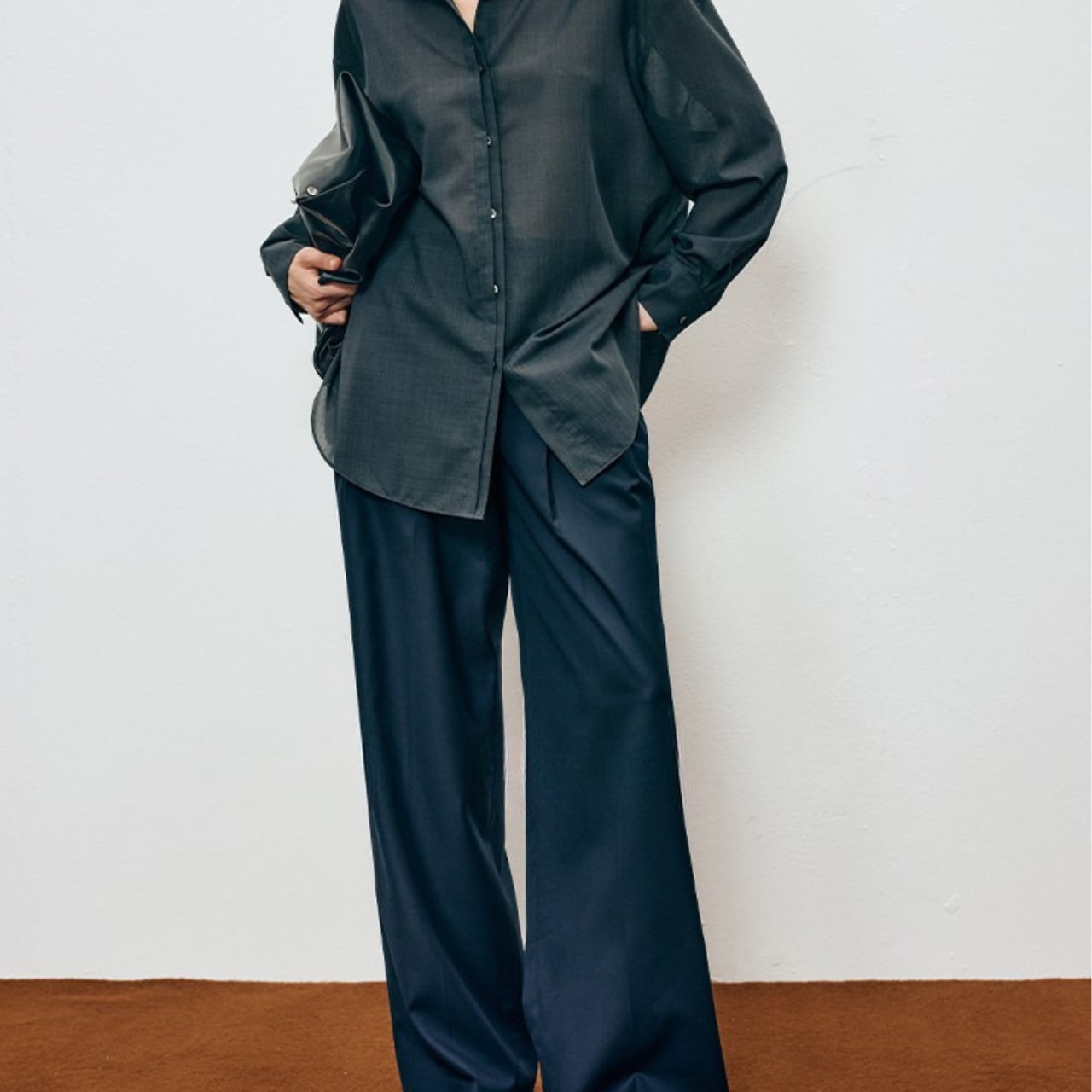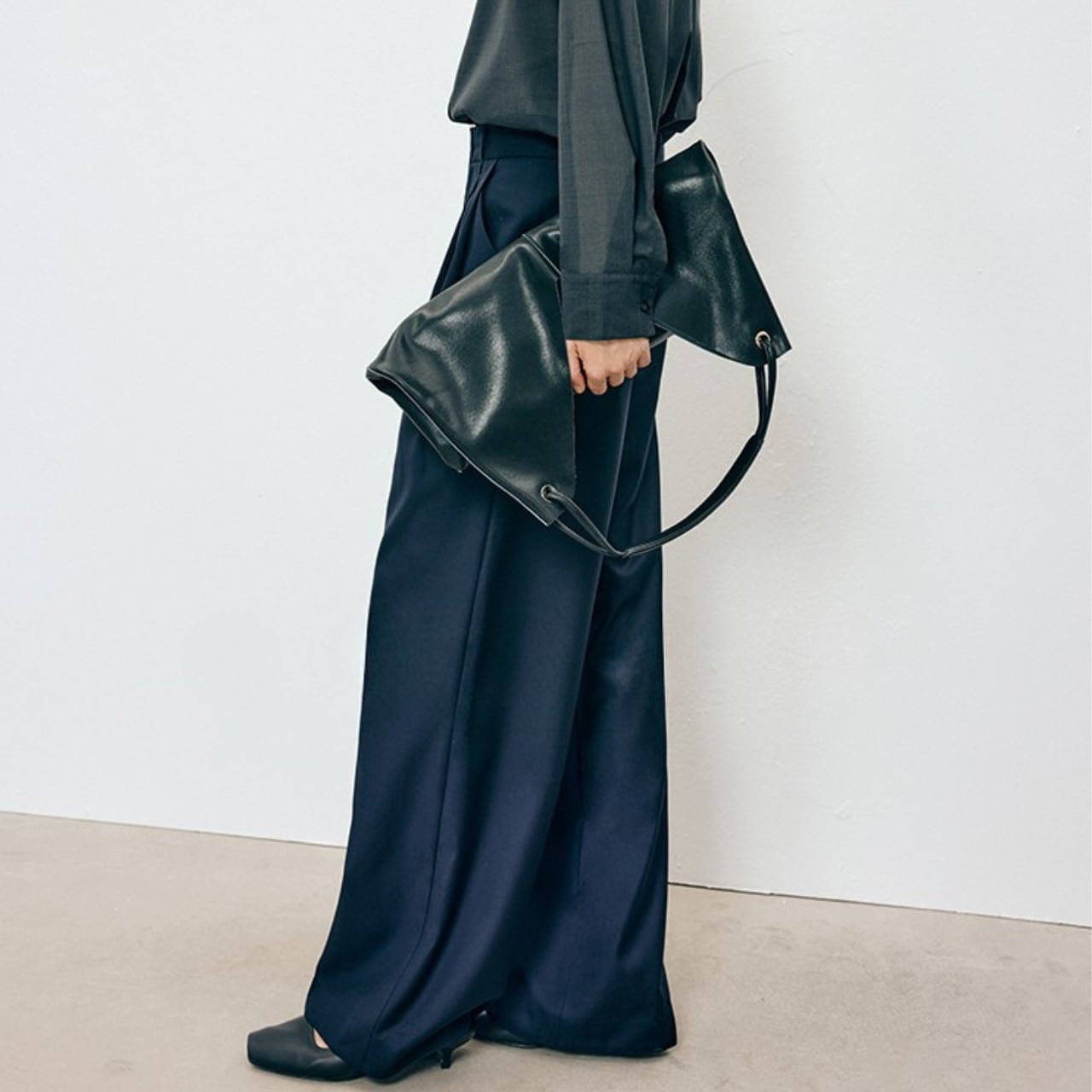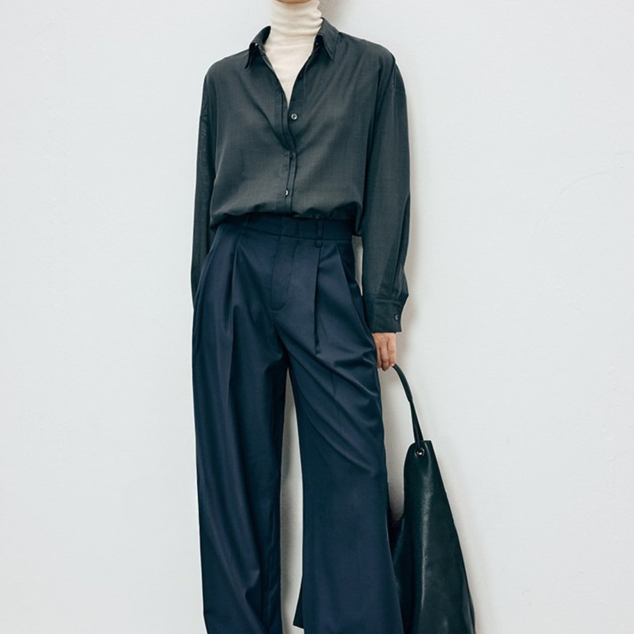 プリーツ入り ワイドレッグ フルレングス パンツ P002