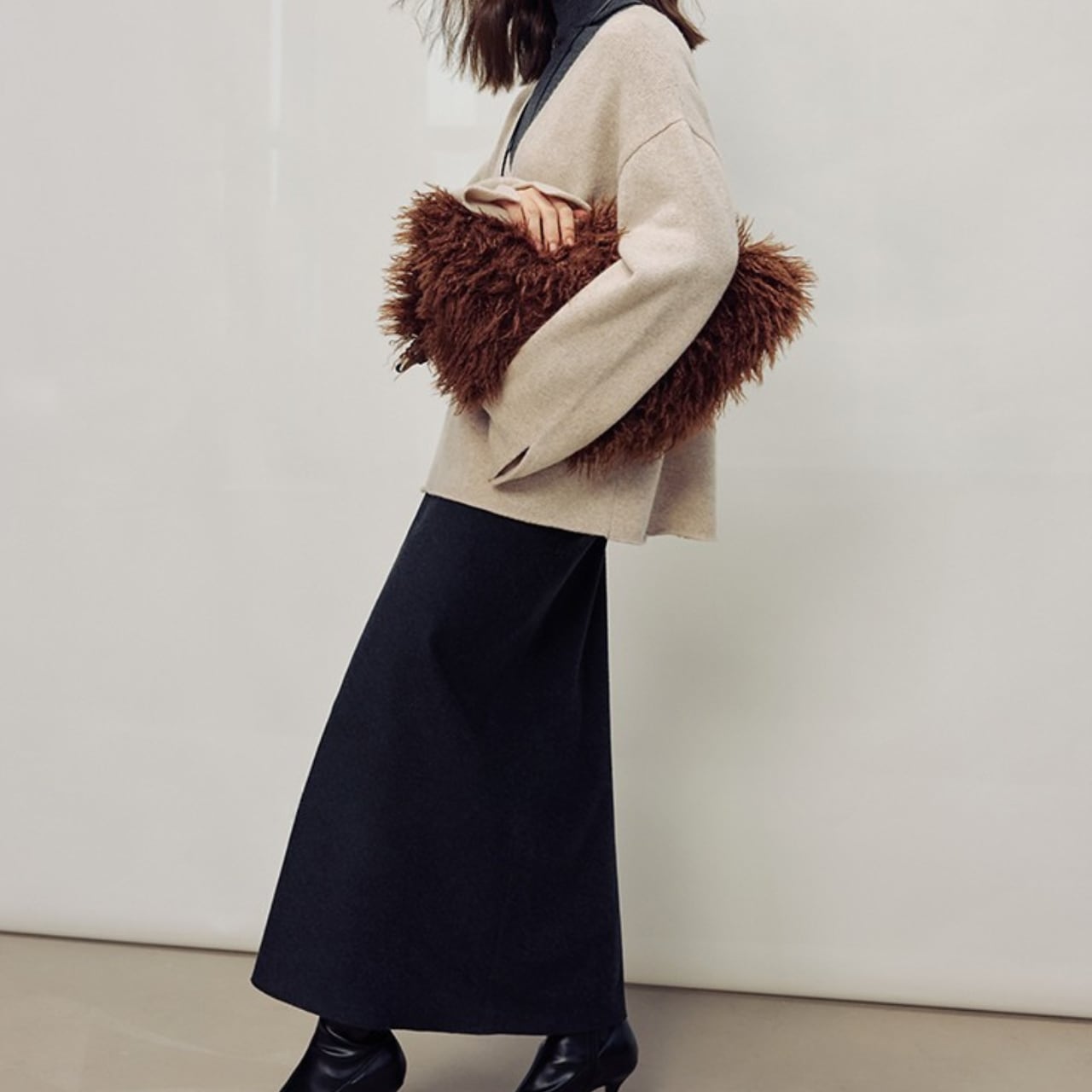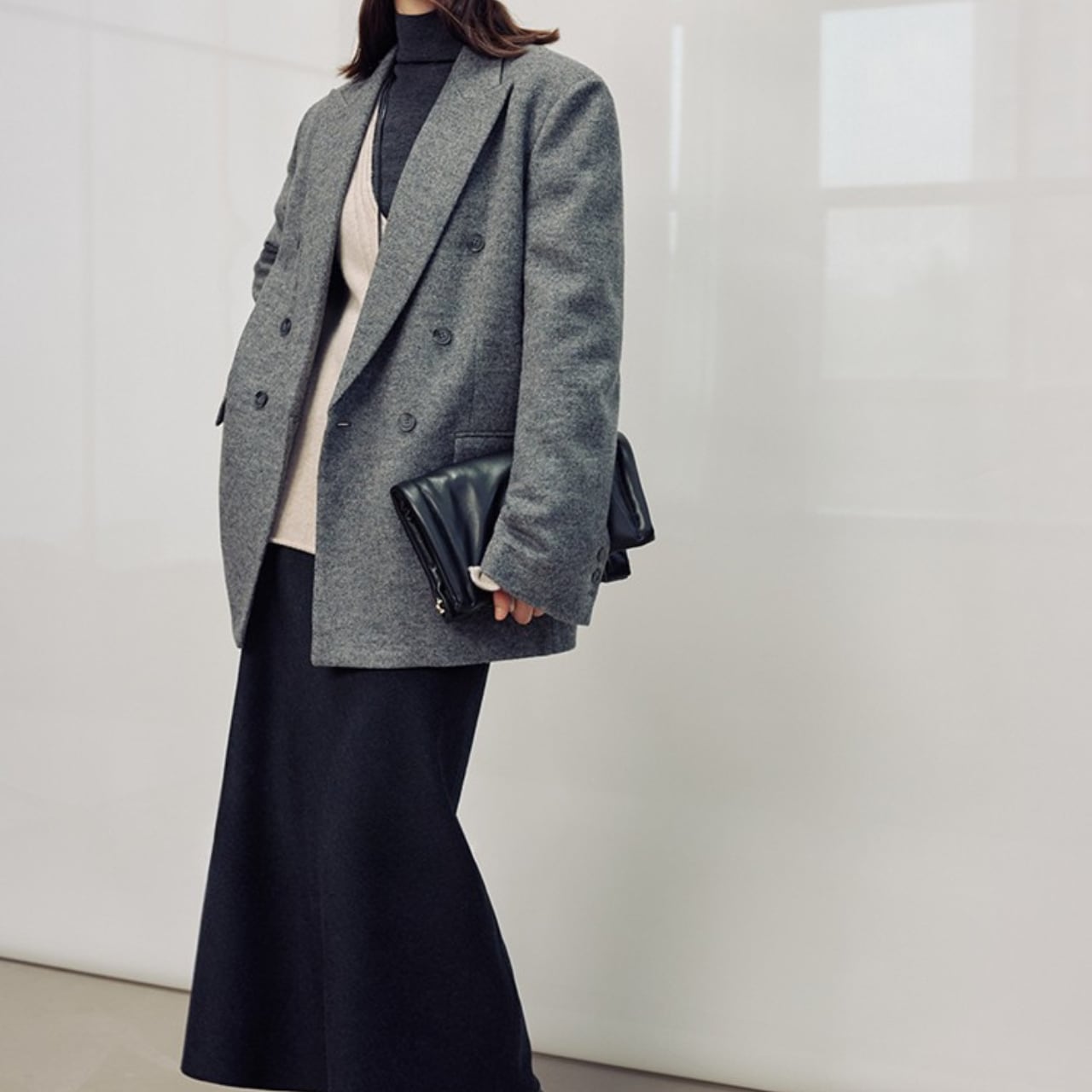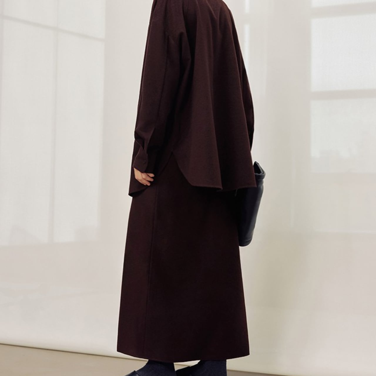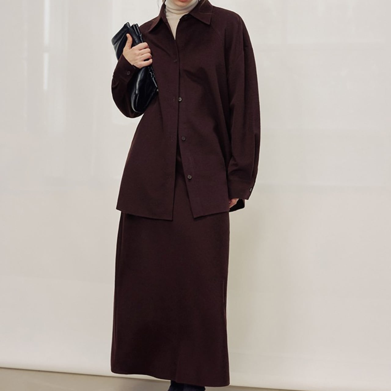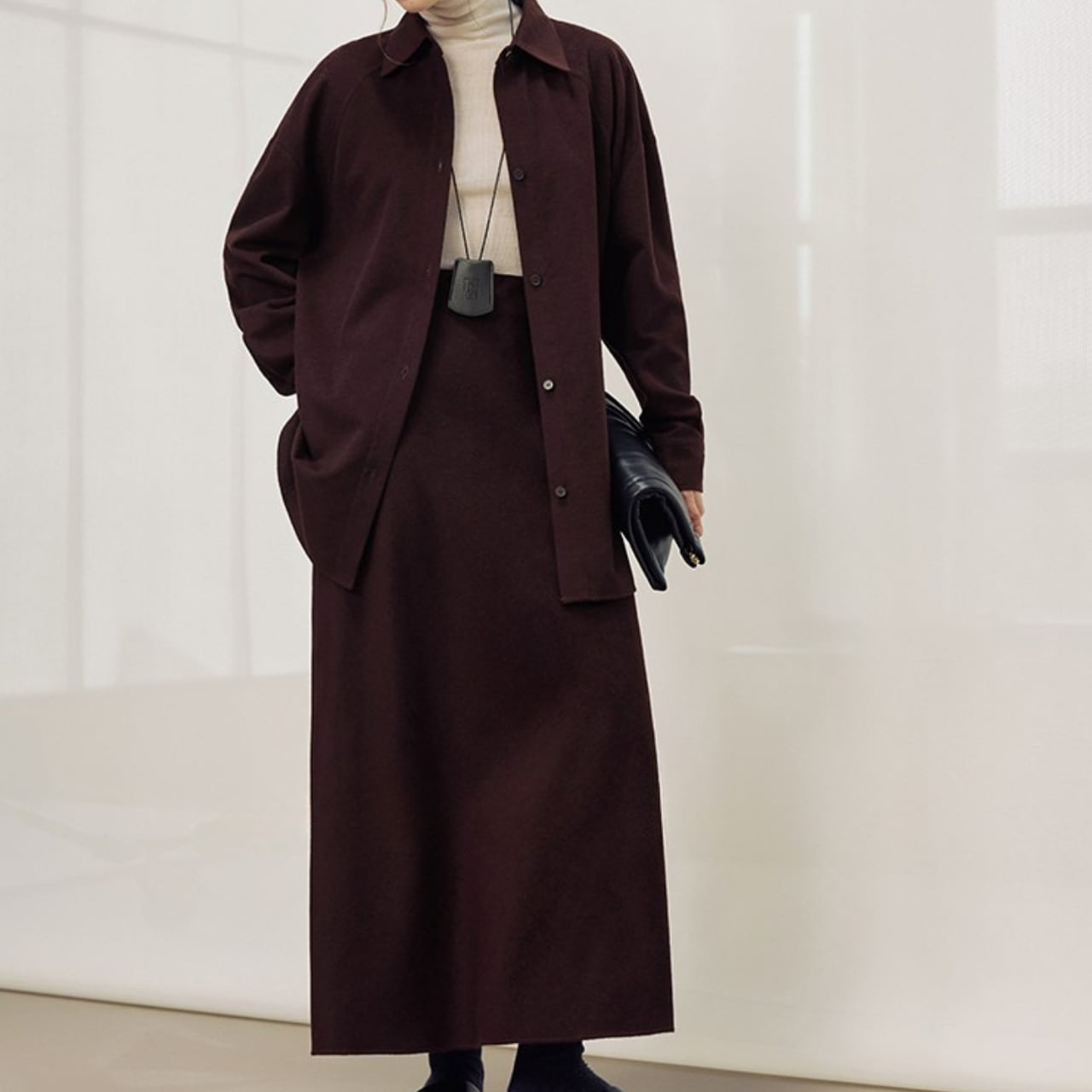 シンプルなデザインで、様々なトップスと相性の良いマキシ丈スカート。