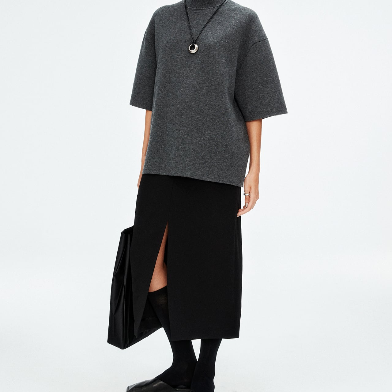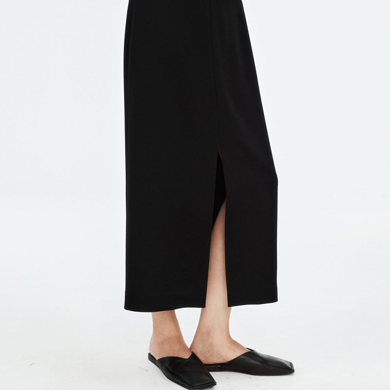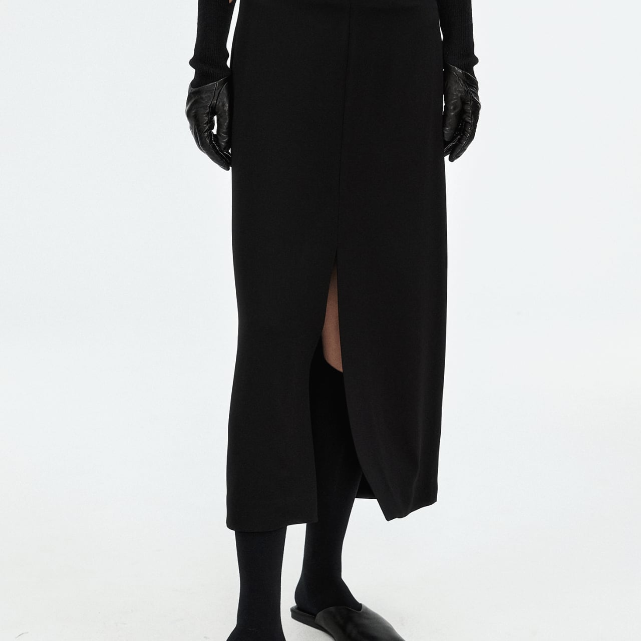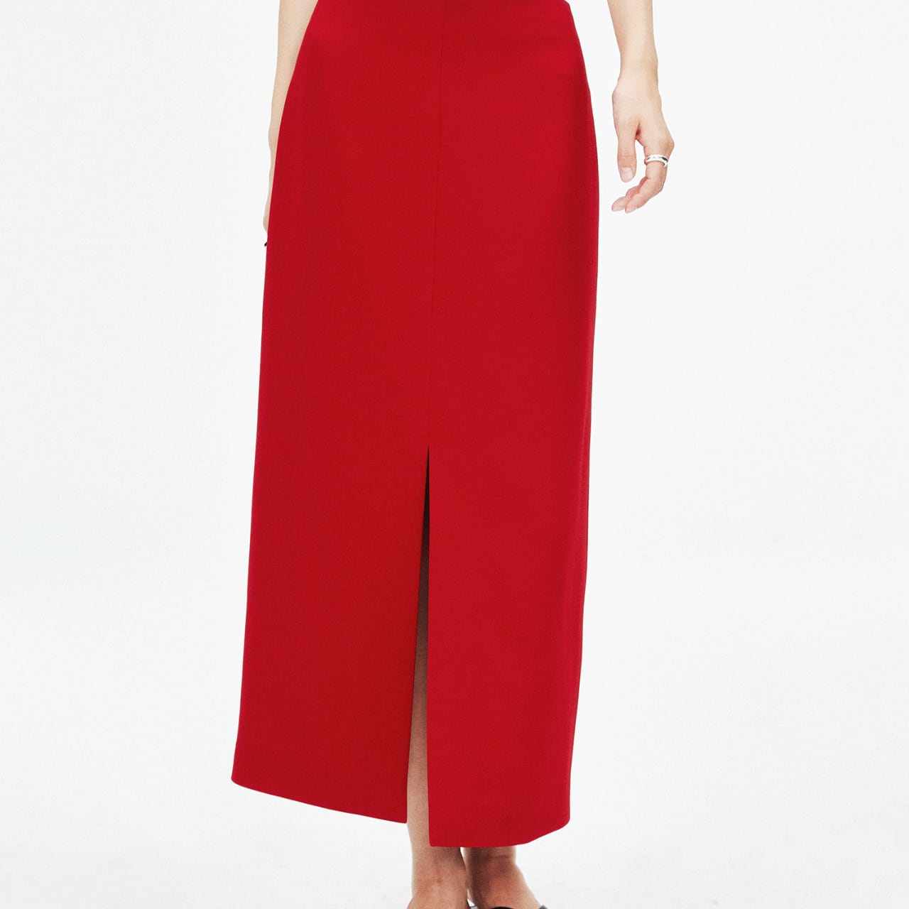 深めのスリットが特徴的なミモレ丈タイトスカート。