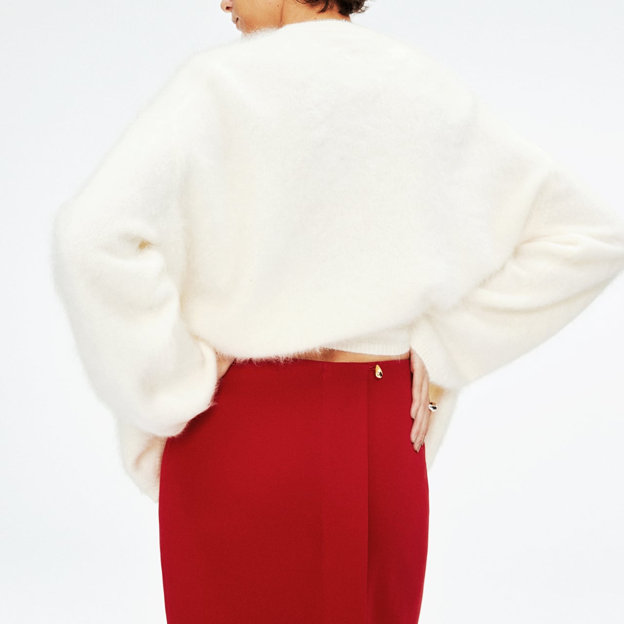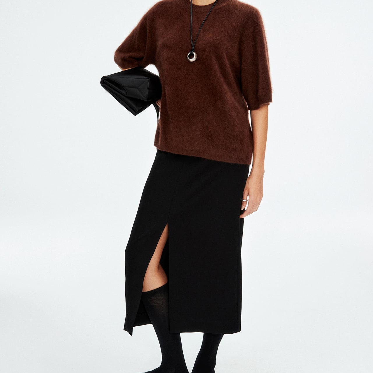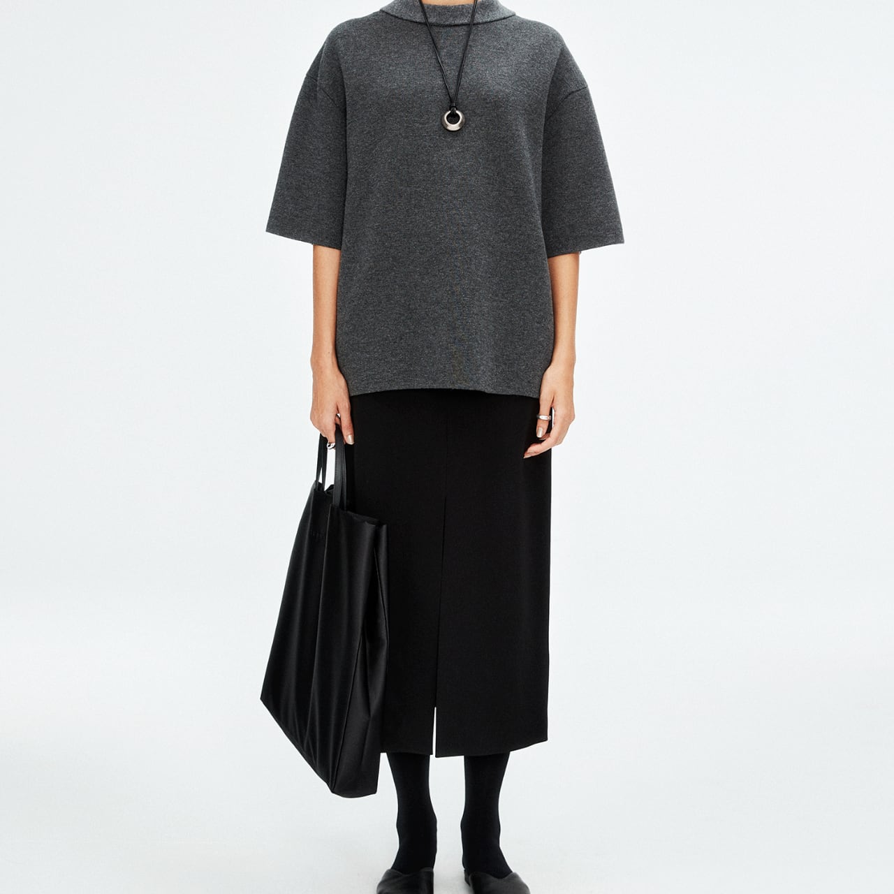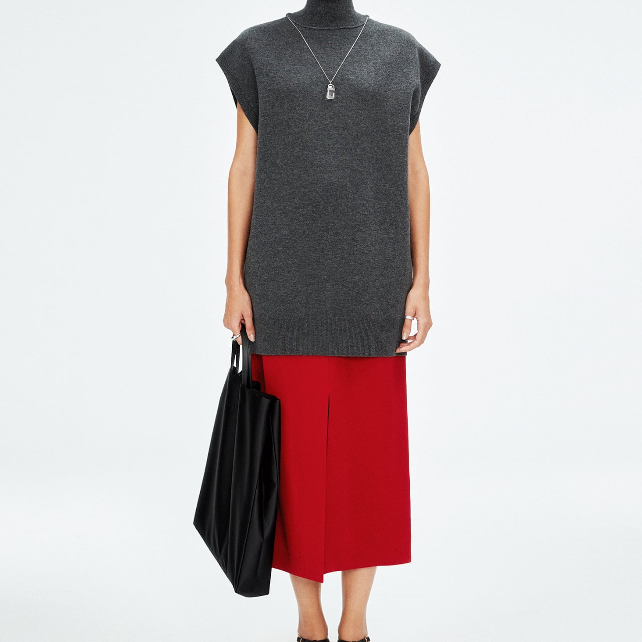 深めのスリットが特徴的なミモレ丈タイトスカート。