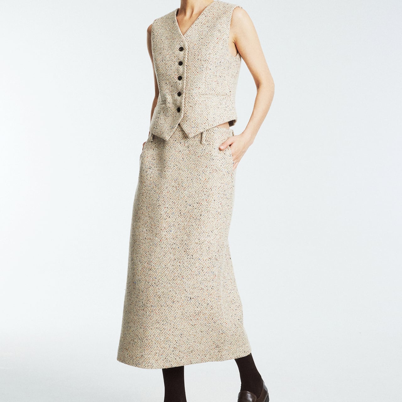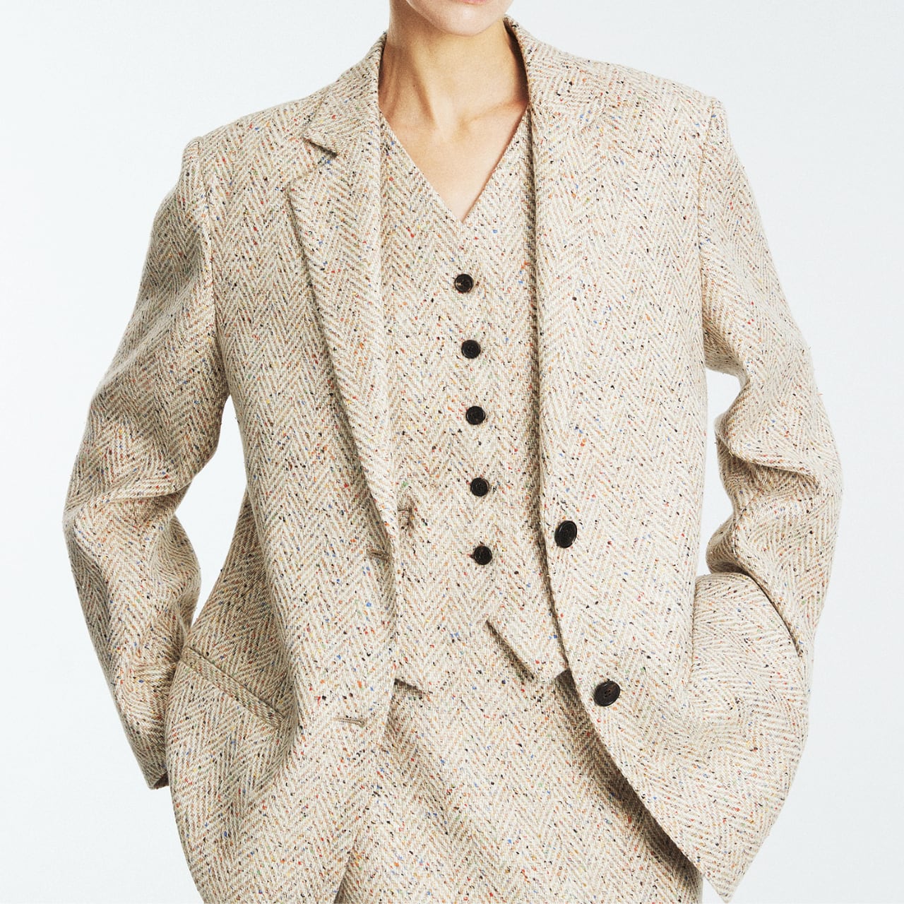 同素材のジャケットやスカートと合わせて、セットアップとしても着用いただけます。
