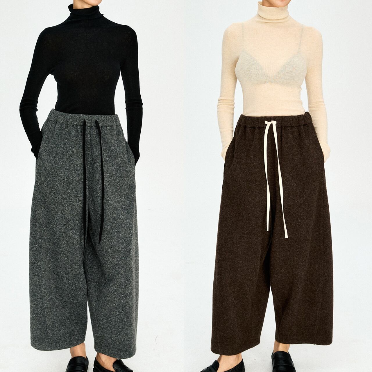 バルーンシルエットパンツ ウエストゴム・9分丈 P006